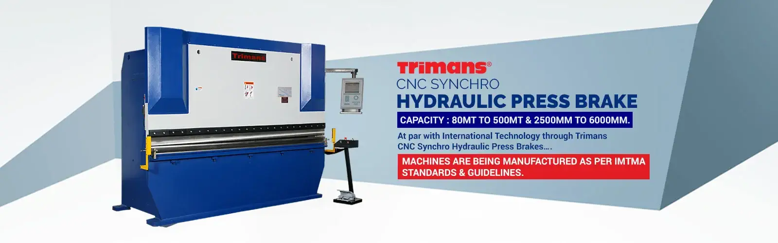 NuGEN Machineries Limited offers Trimans CNC Synchro Hydraulic Press Brakes comes with Three Axes (Y1-Y2-X) Alpha Numeric Controller from Europe, advanced German Hydraulics, CNC Back Gauge and Standard set of Hardened and Ground Tooling from Italy. The Hydraulic Systems are specially designed for Press Brakes with Close loop controlled Proportional Valves for Synchronizing and Pressure Control. The Compact Manifold Block eliminates the Leakage Chances.