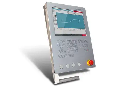 The Alpha – Numeric CNC Controllers offered on the CNC Press Brake Machine are top of the line, user friendly ,easy to use and dedicated Controller from Europe. It can control up to 4 Axes. It is fitted with Monochrome Screen and Key Board with Large Keys. It also controls the Pressure and Crowning. It offers all the functions which are necessary for compliance with the international safety regulations. Its features include Programming of Bending Angle up to 0.1 Deg. Resolution, with Automatic Calculation of Bending Force and Depth according to Material thickness, type and desired bending angle. It ensures full protection against concentrated load on Tooling. It is also possible to program the Stroke, Work Speed (10% to 100%), Return Speed (10% to 100%) to make release of Heavy / Very Wide Jobs Smoother.
